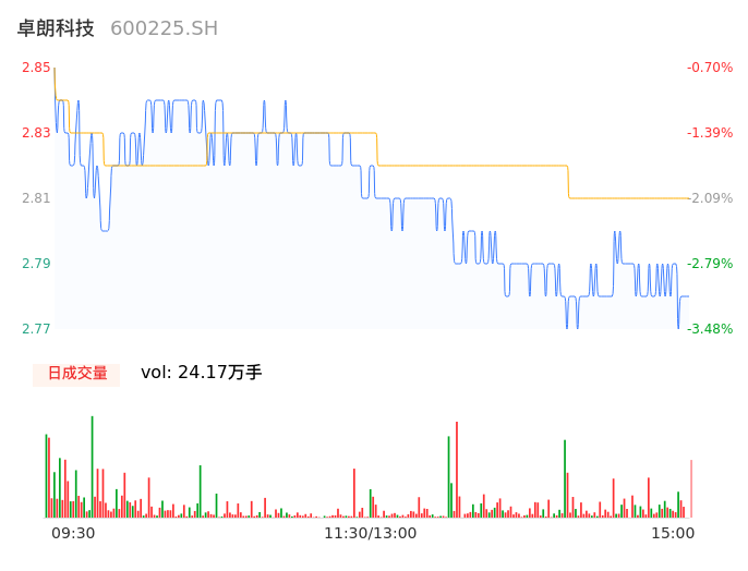 04月08日,卓朗科技收报2.78,股价涨幅-3.14%,成交金额6788.65万元,换手率0.71%。