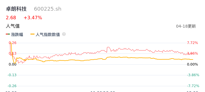 04月18日,卓朗科技收报2.68,股价涨幅3.47%,成交金额1.88亿元,换手率2.05%。