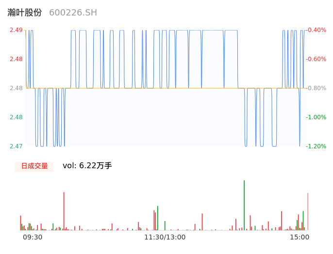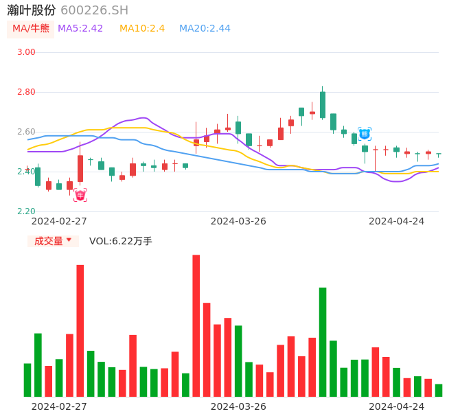 04月24日,瀚叶股份收报2.49,股价涨幅-0.40%,成交金额1543.41万元,换手率0.20%。
