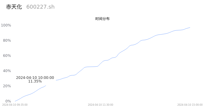 根据成交分布分析,该股票当天放量成交,成交清淡。时间上看,早盘前半小时成交量占据当天总成交量的11.35%;价格上看,成交呈现无峰态。成交分布分析主要研究股票成交的分布特性,不具有预测功能,请知悉。