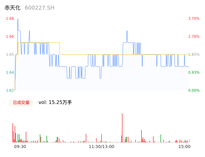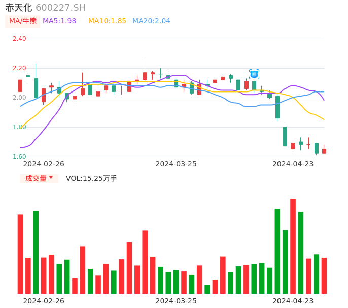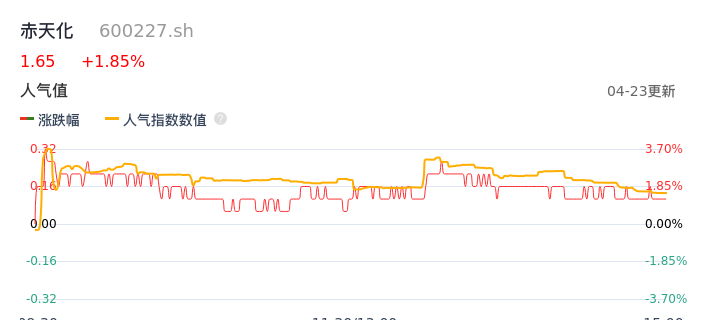 04月23日,赤天化收报1.65,股价涨幅1.85%,成交金额2516.72万元,换手率1.19%。