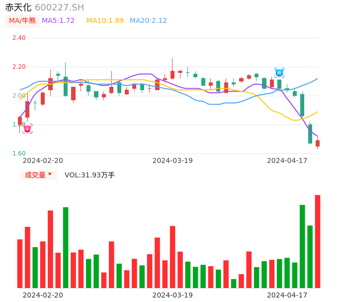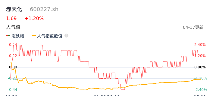 04月17日,赤天化收报1.69,股价涨幅1.20%,成交金额5370.53万元,换手率2.50%。