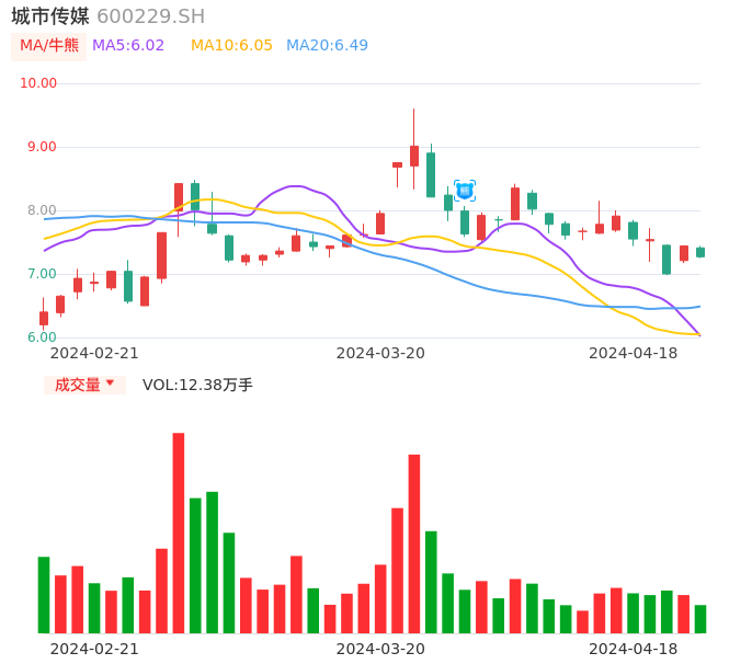04月18日,城市传媒收报7.27,股价涨幅-2.28%,成交金额9084.44万元,换手率1.84%。