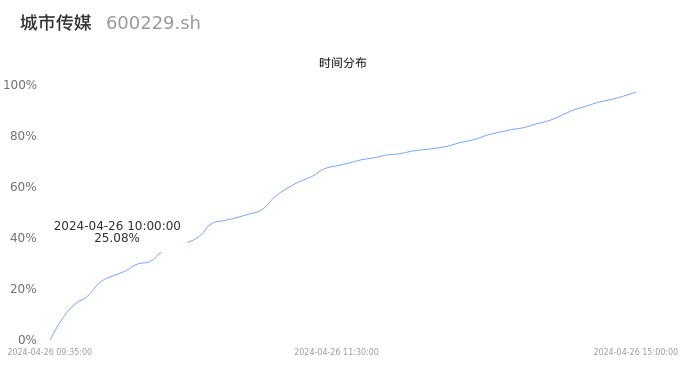 600229城市传媒2024年04月26日成交13.05万手,成交金额9510.05万元,相较昨日放量3.45万手,换手率1.94%,成交清淡。