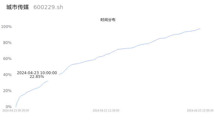 600229城市传媒2024年04月23日成交7.79万手,成交金额5630.25万元,相较昨日缩量1580手,换手率1.16%,成交清淡。