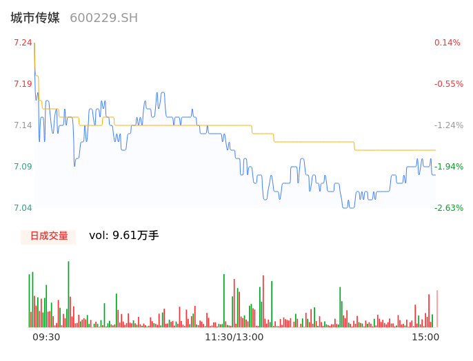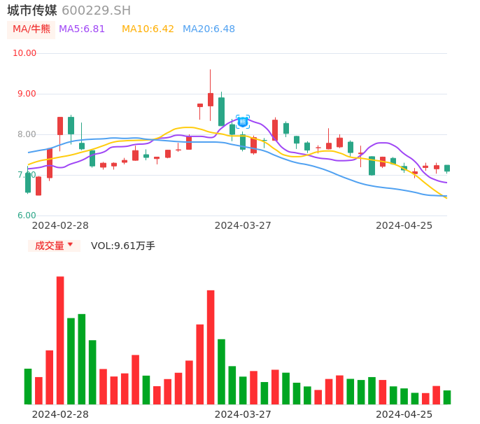 04月25日,城市传媒收报7.09,股价涨幅-1.94%,成交金额6831.53万元,换手率1.43%。