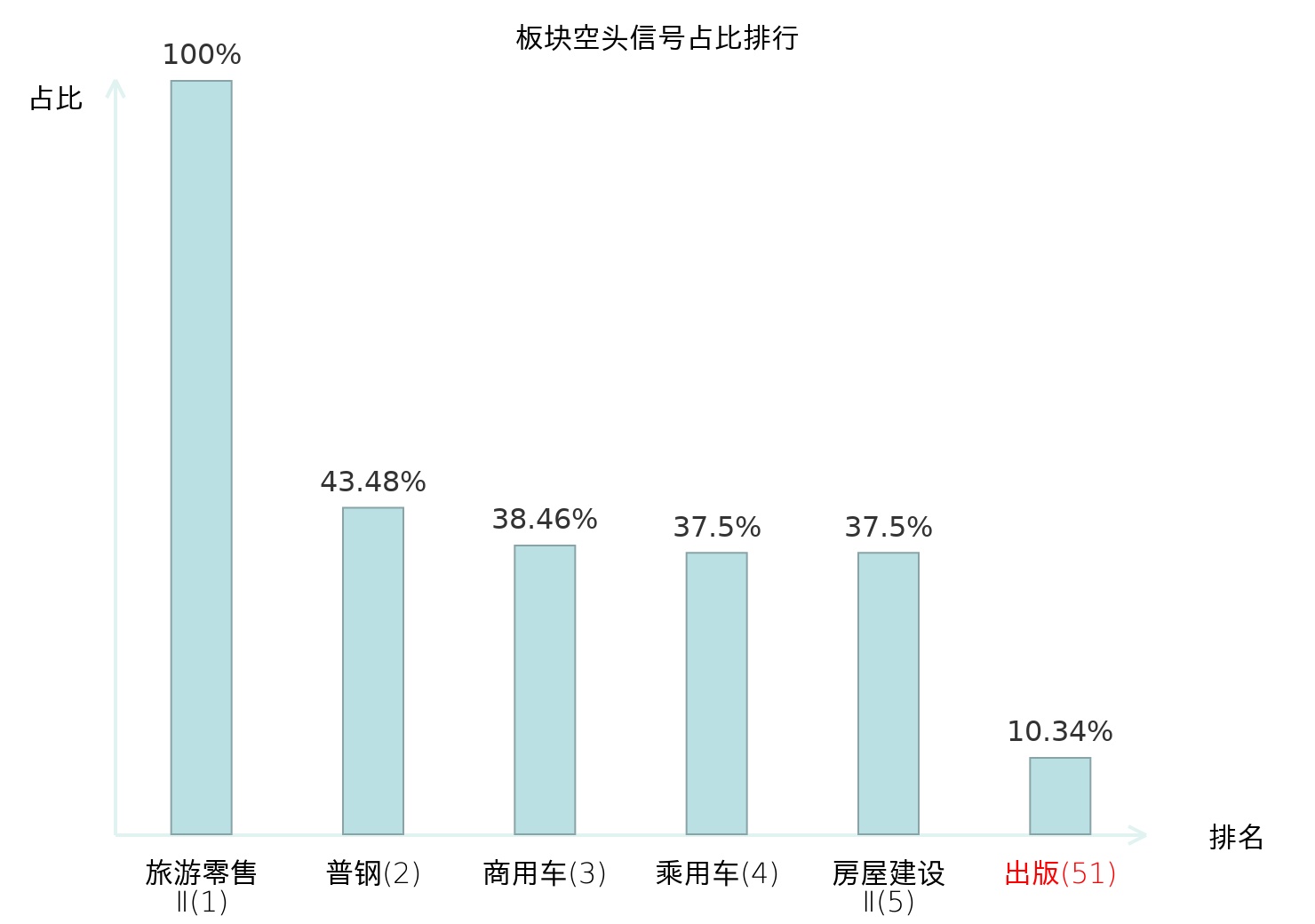 全市场所有行业板块中主力空头信号占比排名中,旅游零售Ⅱ板块位居第一。普钢板块名次提升最快,较昨日上升114位。