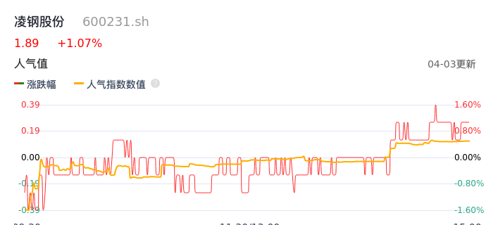 04月03日,凌钢股份收报1.89,股价涨幅1.07%,成交金额4502.81万元,换手率0.85%。