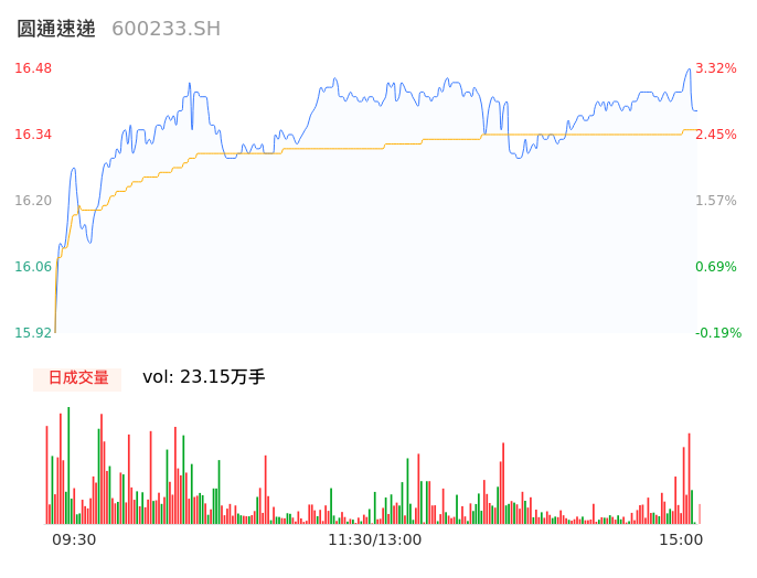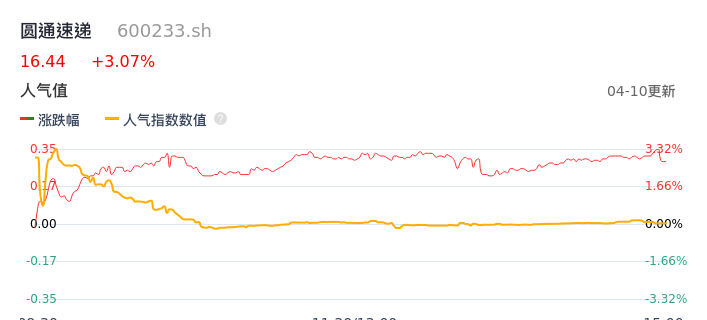04月10日,圆通速递收报16.44,股价涨幅3.07%,成交金额3.78亿元,换手率0.67%。
