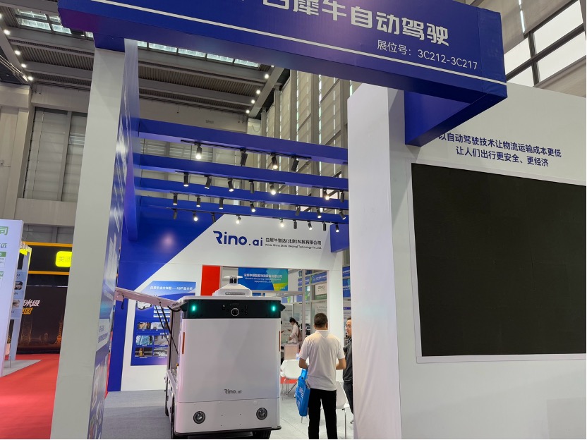 白犀牛展台及其无人物流车产品(财联社记者 摄)