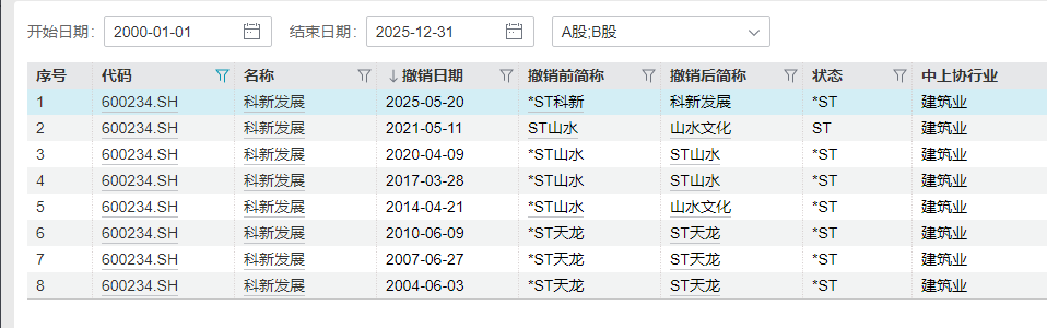 在常年亏损的背景下,科新发展却仍能维持着上市地位,堪称A股市场的“不死鸟”:上市25年来,公司有多达4100多个交易日处于ST状态或*ST状态,占其总交易日的比例接近68%。更令人惊奇的是,公司先后7次成功撤销退市风险警示,完成保壳壮举。