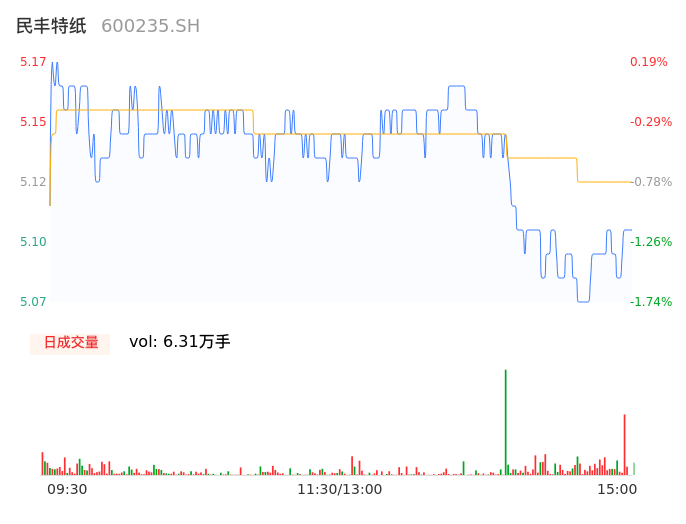 04月12日,民丰特纸收报5.09,股价涨幅-1.36%,成交金额3226.92万元,换手率1.80%。
