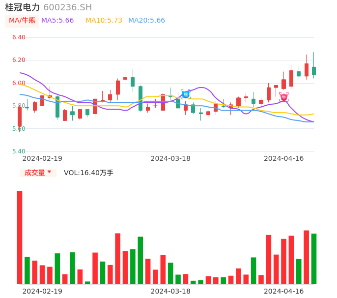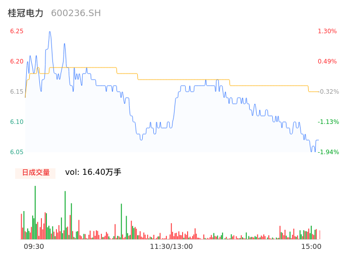 04月16日,桂冠电力收报6.07,股价涨幅-1.62%,成交金额1.01亿元,换手率0.21%。