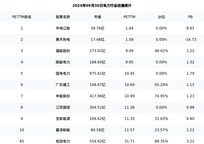 从估值角度看:桂冠电力最新市盈率PETTM为31.71,在行业内排名65/102,处于89.35分位。