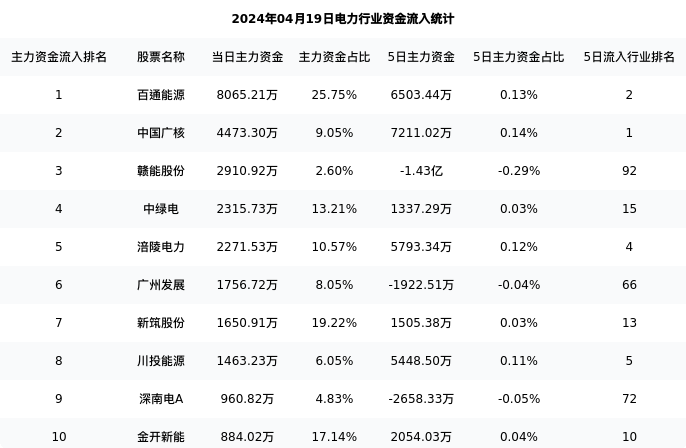 从主力资金流向来看,电力行业今日主力资金流入55.17亿元,在所有申万二级行业中排名:118/131。