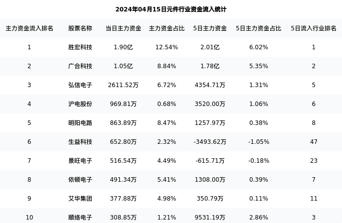 从主力资金流向来看,元件行业今日主力资金流入32.73亿元,在所有申万二级行业中排名:13/131。