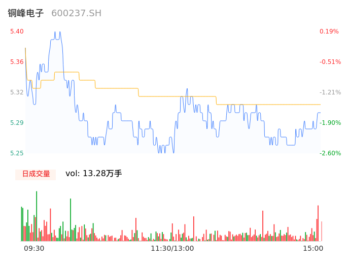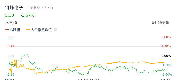 04月19日,铜峰电子收报5.30,股价涨幅-1.67%,成交金额7045.27万元,换手率2.20%。