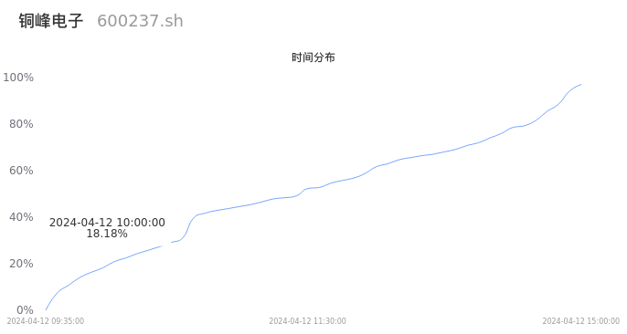600237铜峰电子2024年04月12日成交9.69万手,成交金额5655.21万元,相较昨日缩量7821手,换手率1.60%,成交清淡。