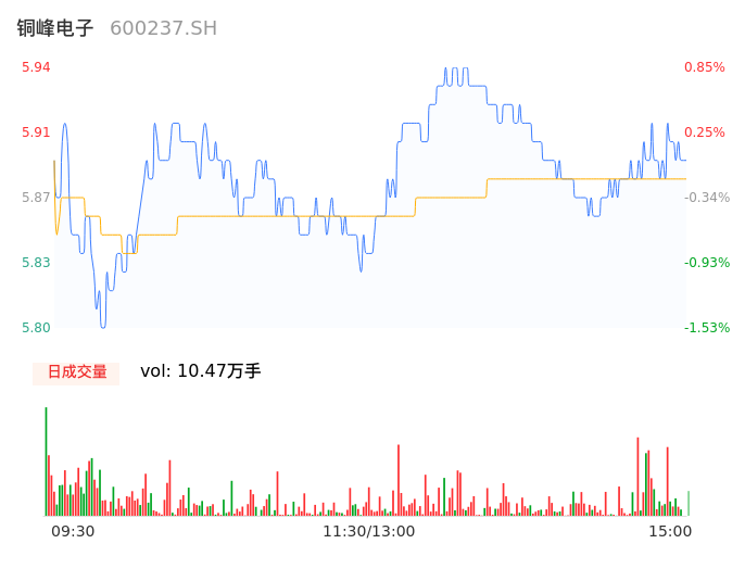04月11日,铜峰电子收报5.88,股价涨幅-0.17%,成交金额6157.78万元,换手率1.73%。