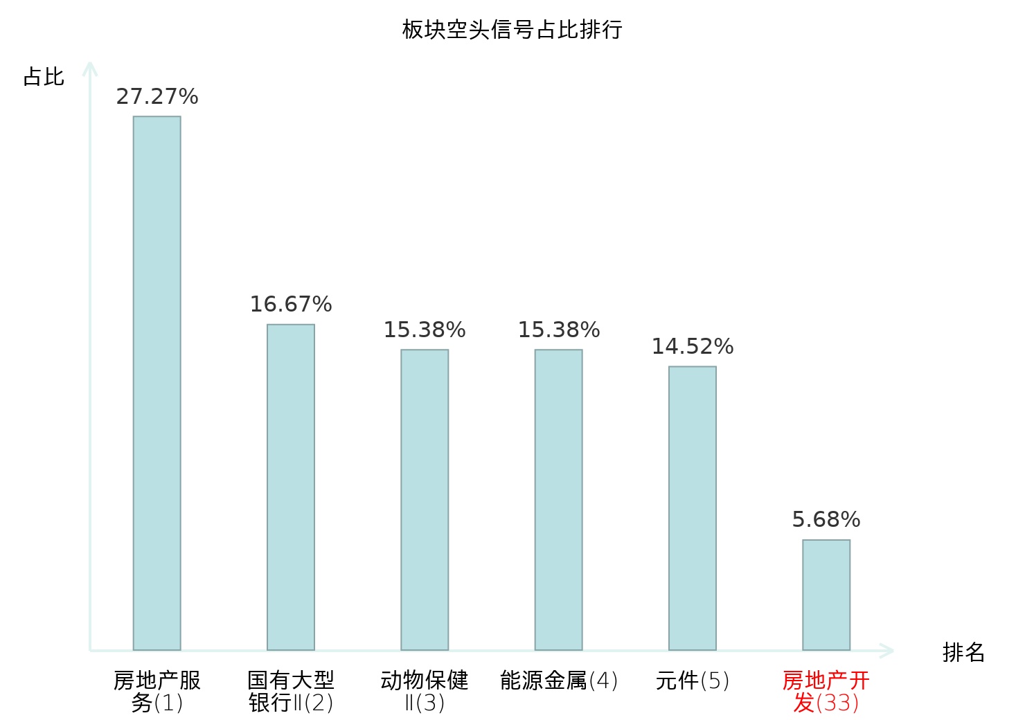 全市场所有行业板块中主力空头信号占比排名中,房地产服务板块位居第一。元件板块名次提升最快,较昨日上升122位。