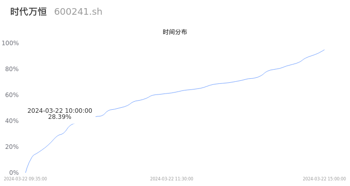 600241时代万恒2024年03月22日成交10.40万手,成交金额7420.56万元,相较昨日缩量4038手,换手率3.53%,成交清淡。