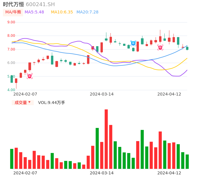 04月12日,时代万恒收报6.97,股价涨幅-2.79%,成交金额6664.45万元,换手率3.21%。