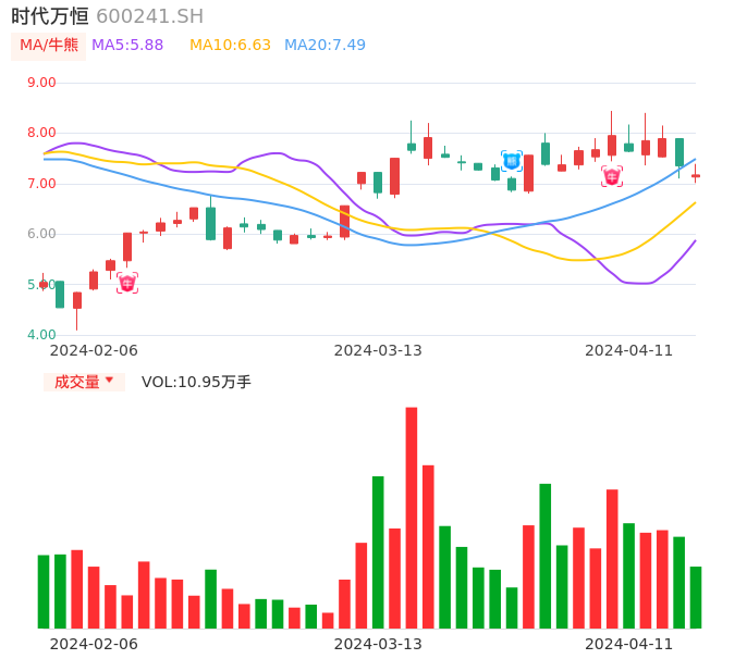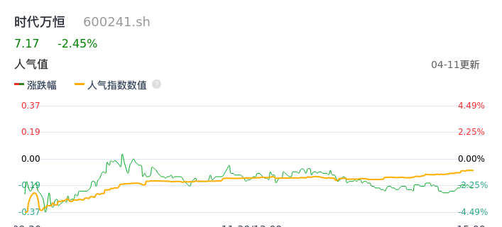 04月11日,时代万恒收报7.17,股价涨幅-2.45%,成交金额7859.03万元,换手率3.72%。