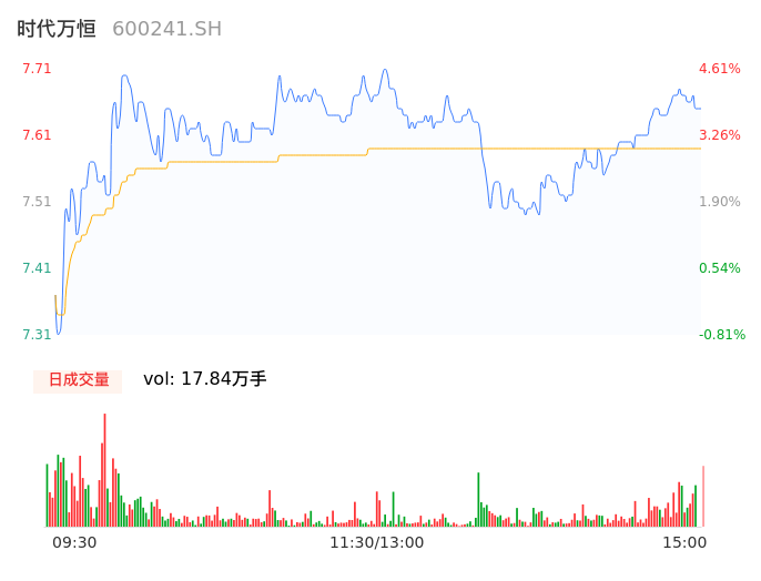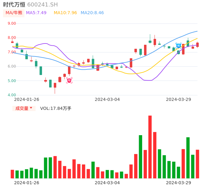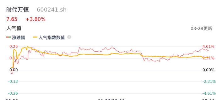 03月29日,时代万恒收报7.65,股价涨幅3.80%,成交金额1.36亿元,换手率6.06%。
