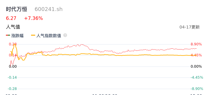 04月17日,时代万恒收报6.27,股价涨幅7.36%,成交金额5189.57万元,换手率2.87%。