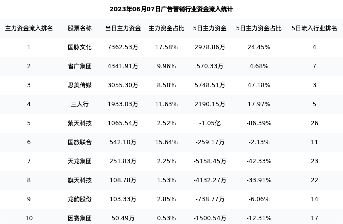 从主力资金流向来看,广告营销行业今日主力资金流入39.70亿元,在所有申万二级行业中排名:46/131。