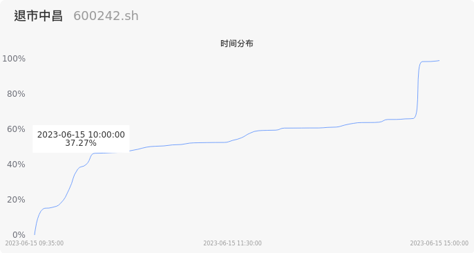 600242退市中昌2023年06月15日成交23.85万手,成交金额539.47万元,相较昨日放量17.46万手,换手率5.29%,成交清淡。