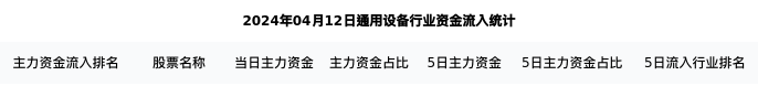 从主力资金流向来看,通用设备行业今日主力资金流入41.59亿元,在所有申万二级行业中排名:121/131。