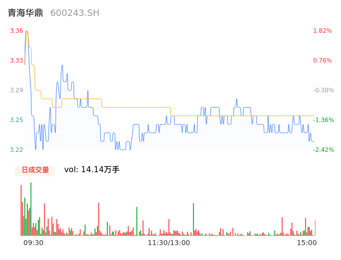 04月22日,青海华鼎收报3.23,股价涨幅-2.12%,成交金额4610.62万元,换手率3.22%。