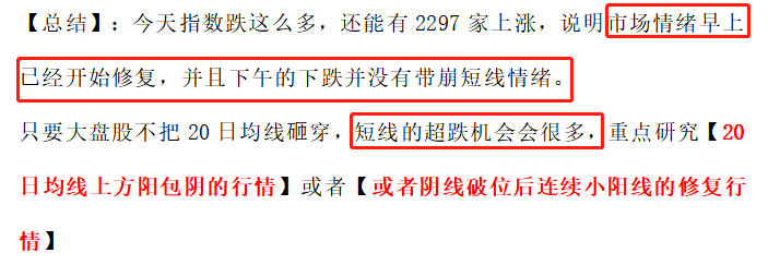【总结】:冰点看修复,沸点看分化。下周我觉得小阴、小阳线进攻为主。不会天天这种大阳线修复。因为没有修复的空间了。所以下周留下强势修复的方向,抛弃3天还不能反包的方向。重视3天还没跌破20日均线,开始走反包行情的方向。