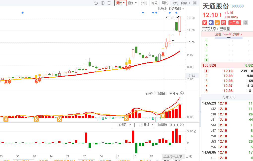 2)20250829-天通股份-四维操盘-近期出现火箭信号且底部量柱由绿转红