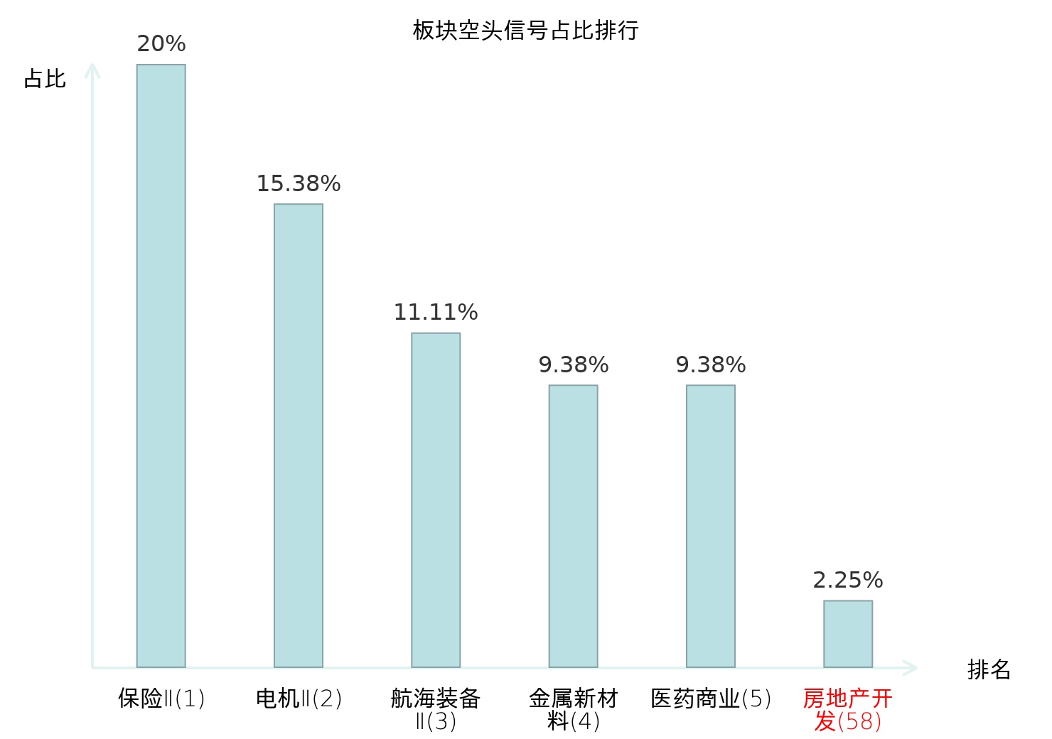 全市场所有行业板块中主力空头信号占比排名中,保险Ⅱ板块位居第一。塑料板块名次提升最快,较昨日上升111位。