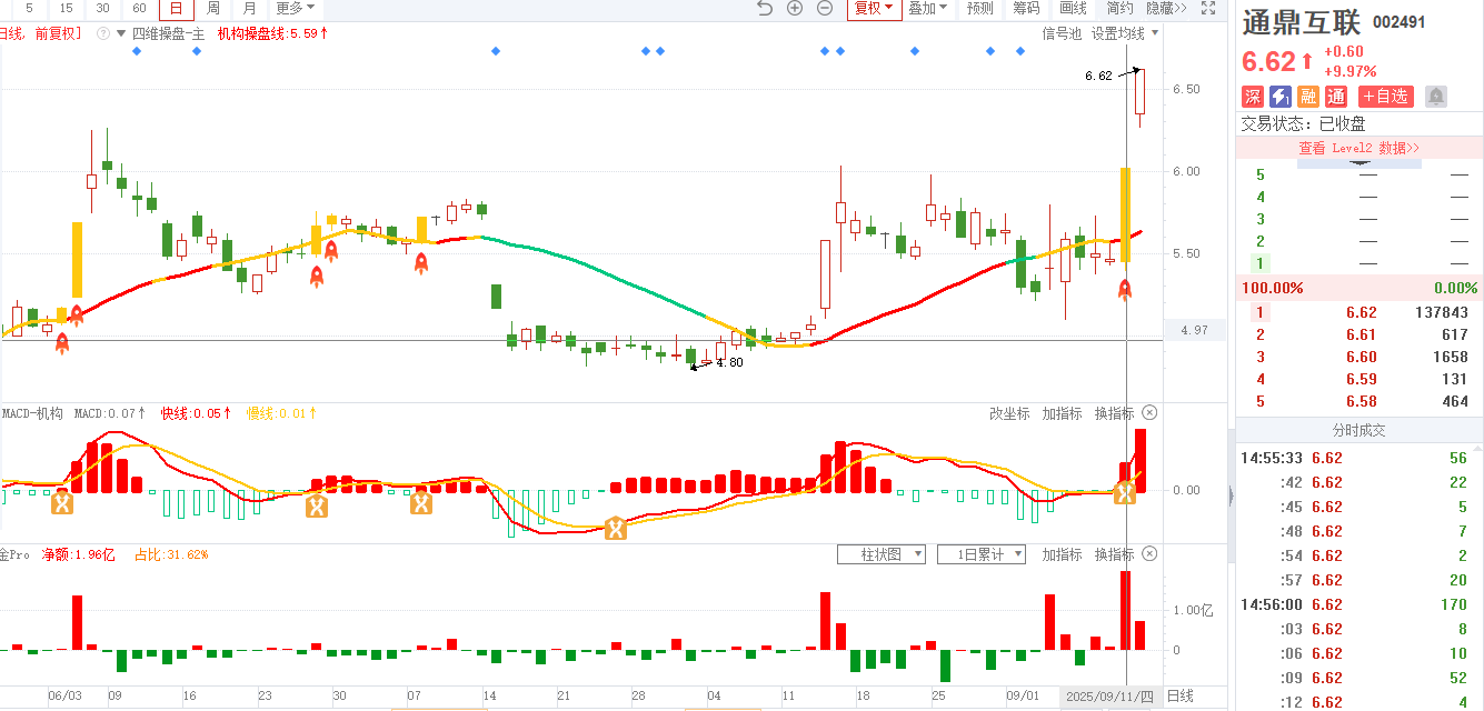 1)20250911-通鼎互联-四维操盘-近期出现火箭信号且底部量柱由绿转红
