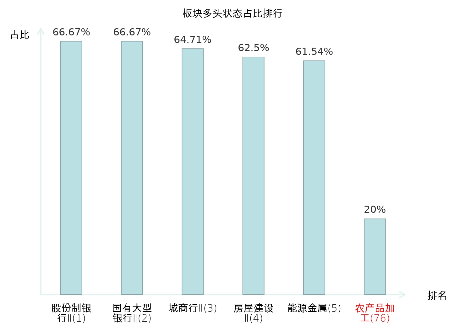 全市场所有行业板块中主力多头状态占比排名中,股份制银行Ⅱ板块位居第一。其他家电Ⅱ板块名次提升最快,较昨日上升102位。