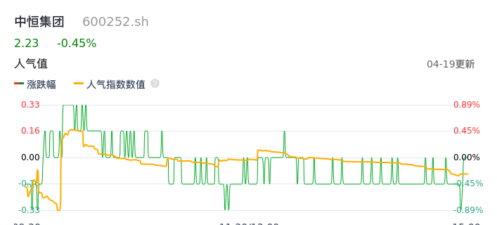 04月19日,中恒集团收报2.23,股价涨幅-0.45%,成交金额5918.93万元,换手率0.77%。
