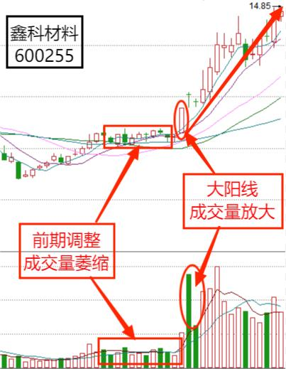 可以看出鑫科材料的K线形态是比较完美的“山中战法”形态,处于上升趋势的过程中,同时小幅调整,成交量也不大,为大阳线蓄势,在震荡几天后成交量放大,股价腾飞而起,短线获利。