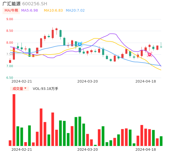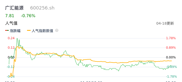04月18日,广汇能源收报7.81,股价涨幅-0.76%,成交金额7.33亿元,换手率1.42%。