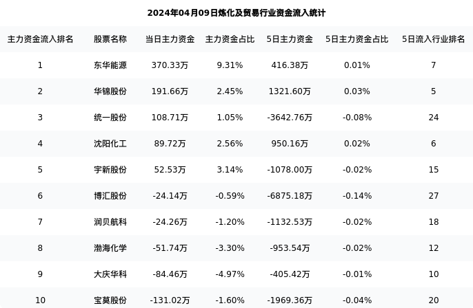 从主力资金流向来看,炼化及贸易行业今日主力资金流入15.55亿元,在所有申万二级行业中排名:65/131。