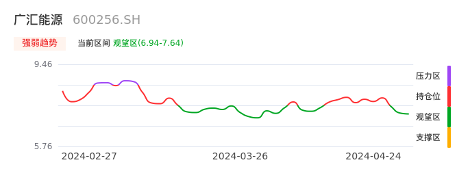 04月24日,广汇能源收报7.35,股价涨幅-0.81%,成交金额8.32亿元,换手率1.73%。