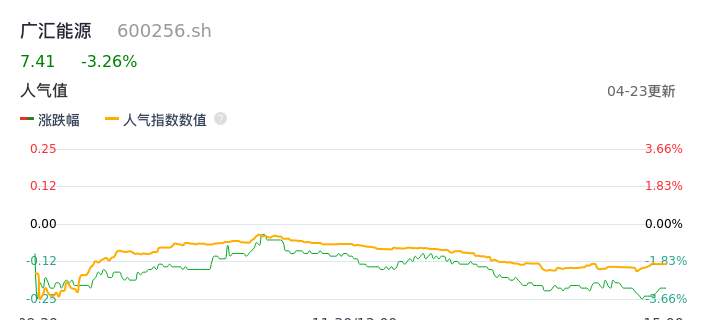 04月23日,广汇能源收报7.41,股价涨幅-3.26%,成交金额8.09亿元,换手率1.65%。