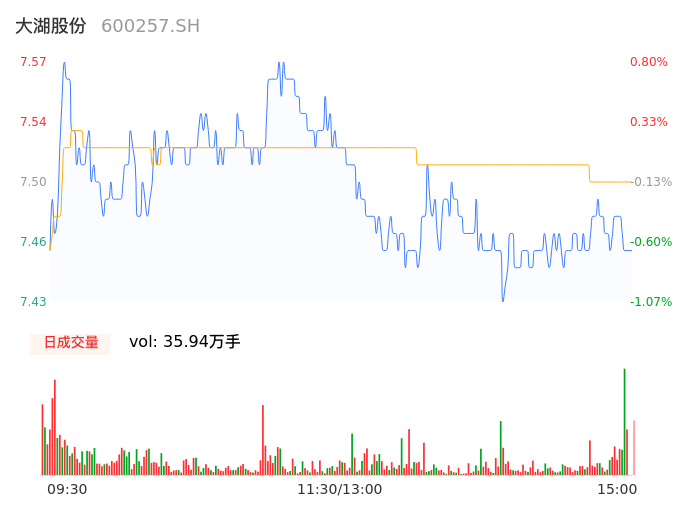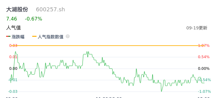 09月19日,大湖股份收报7.46,股价涨幅-0.67%,成交金额2.70亿元,换手率7.47%。
