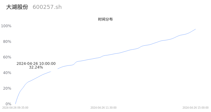 600257大湖股份2024年04月26日成交45.05万手,成交金额2.65亿元,相较昨日放量1.41万手,换手率9.36%,成交清淡。