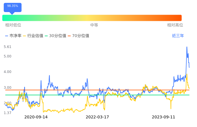 2023年09月11日,大湖股份下跌0.90%收于7.69,今日成交金额4.50亿元。下文将从市盈率PETTM、市净率PB、市现率3个角度去分析公司估值情况。