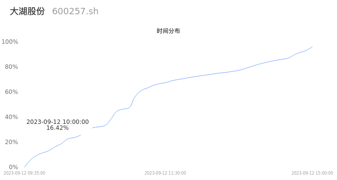 600257大湖股份2023年09月12日成交78.66万手,成交金额6.13亿元,相较昨日放量19.94万手,换手率16.34%,成交活跃。