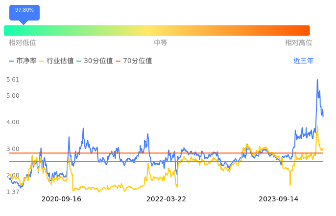 2023年09月15日,大湖股份下跌1.06%收于7.48,今日成交金额3.97亿元。下文将从市盈率PETTM、市净率PB、市现率3个角度去分析公司估值情况。