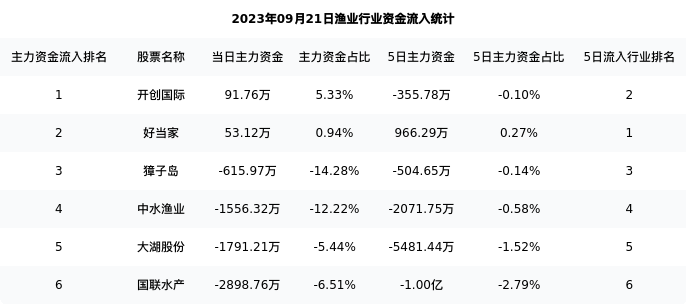 从主力资金流向来看,渔业行业今日主力资金流入2.25亿元,在所有申万二级行业中排名:83/131。